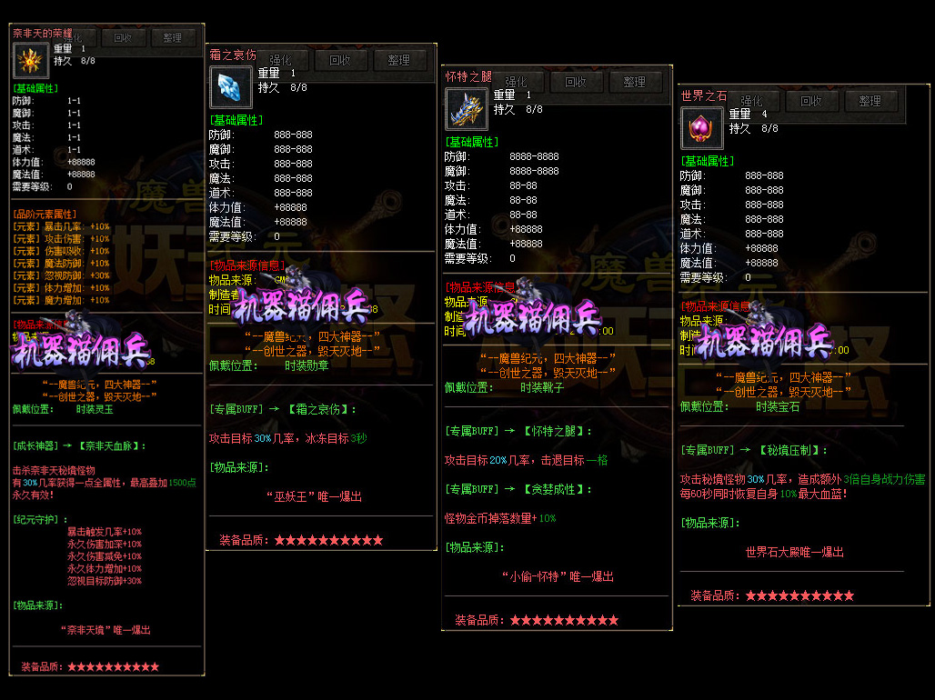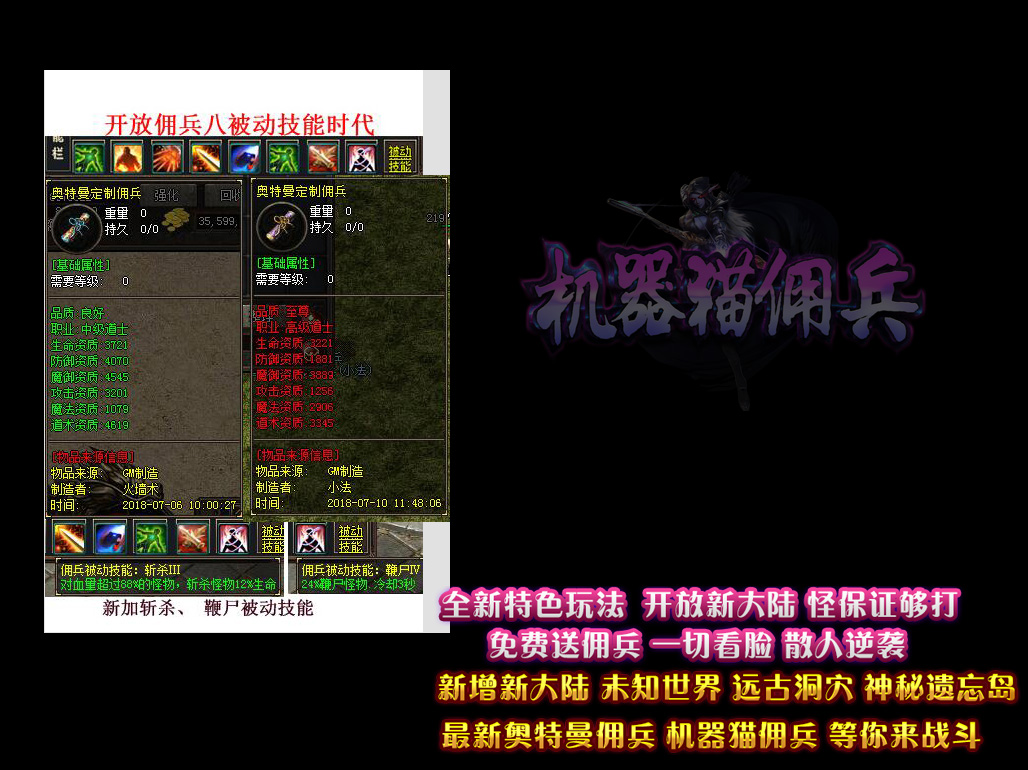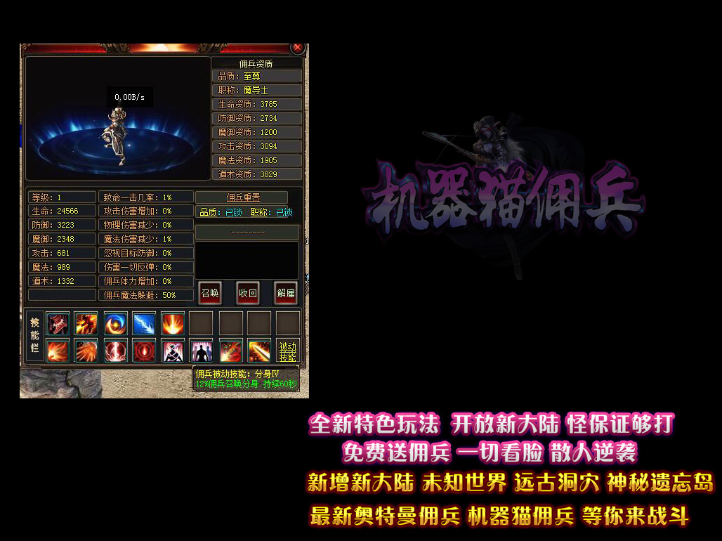 • 【机器猫佣兵】 独家暗黑鉴定系统,开放新古老洞穴,里面怪很凶!Q群:421317201