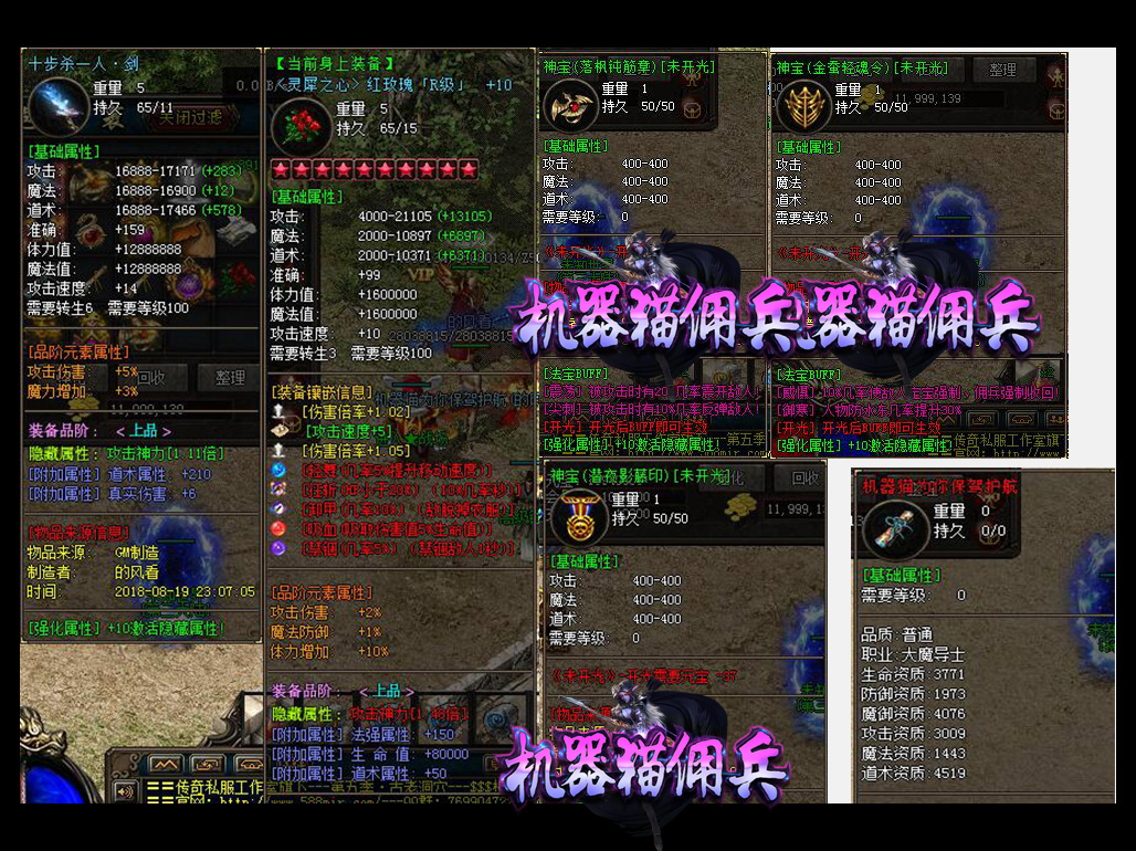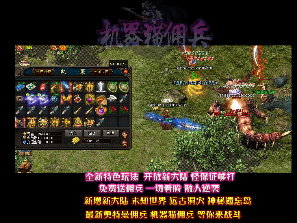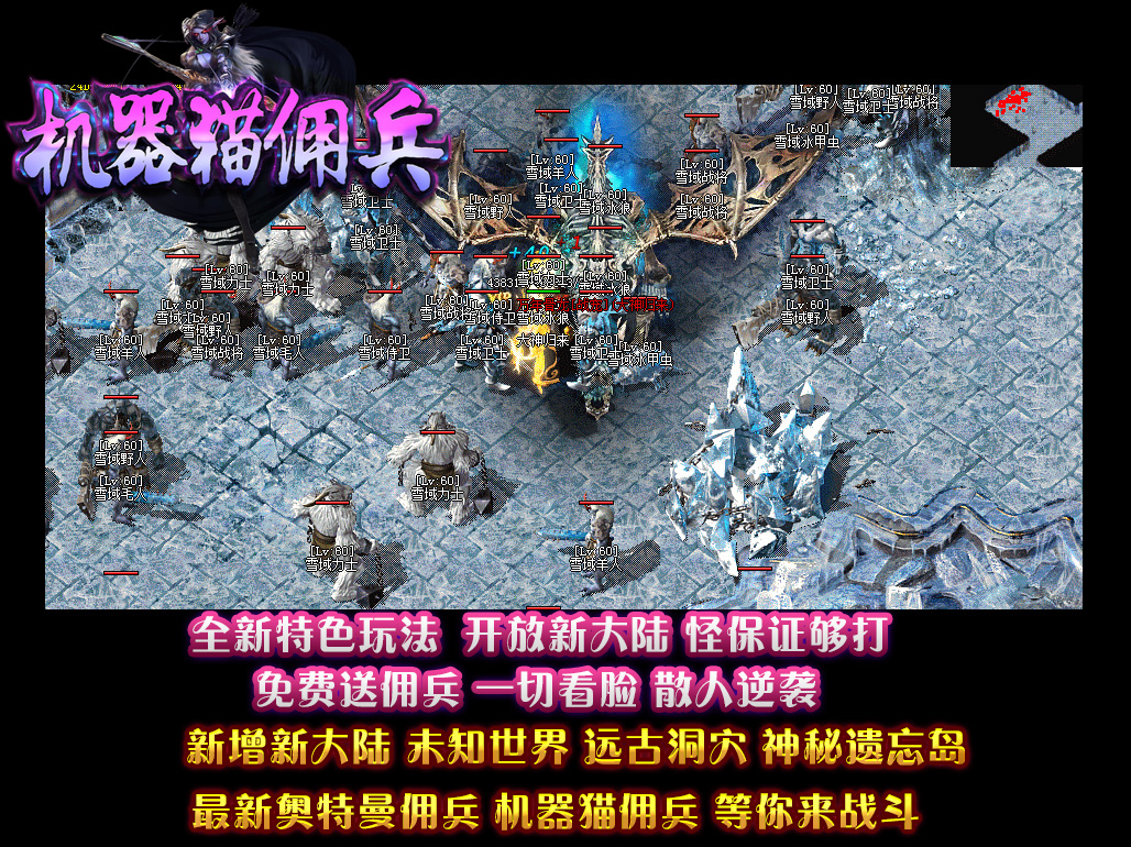 • 【机器猫佣兵】 散人有时间一样可以到终极,本服的装备是全爆的,BOSS全部掉落!花100当爷,一切靠打